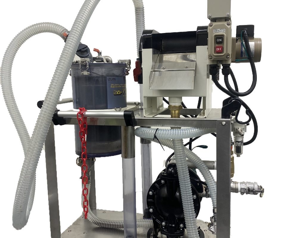 『SV-アルファMAG』は、「すり抜け」「目詰まり」解消のため、スラッジバキューマ―に強力なマグネットセパレーターを組み込んだ、ありそうで他にない最先端のモデルです。『SV-アルファMAG』では、通常のスラッジ回収のみならず、超微細スラッジ(1~3μm)・鋳物ヘドロ(※磁性体)の回収を行うことが可能です。大きい切粉・スラッジをメッシュで回収し、通り抜けた微細スラッジのみをマグネットで強力吸着します。これにより、効率的な回収・脱水を実現します。機能を鑑みると価格も非常にリーズナブルです。